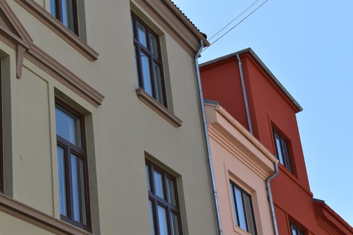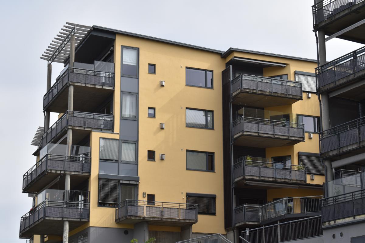 Beskrivelse: Fasaderehabilitering. Riving av eksisterende mangelfullt utførte isolerte fasadesystem og etablering av nytt isolert fasadesystem fra STO, med gjennomfarget puss, støping av nye dekker inkludert nye belegg, nye beslagsarbeider og rekkverk.