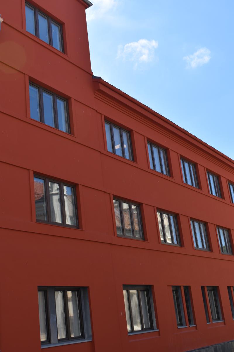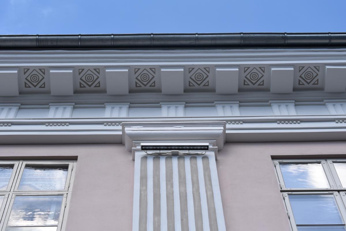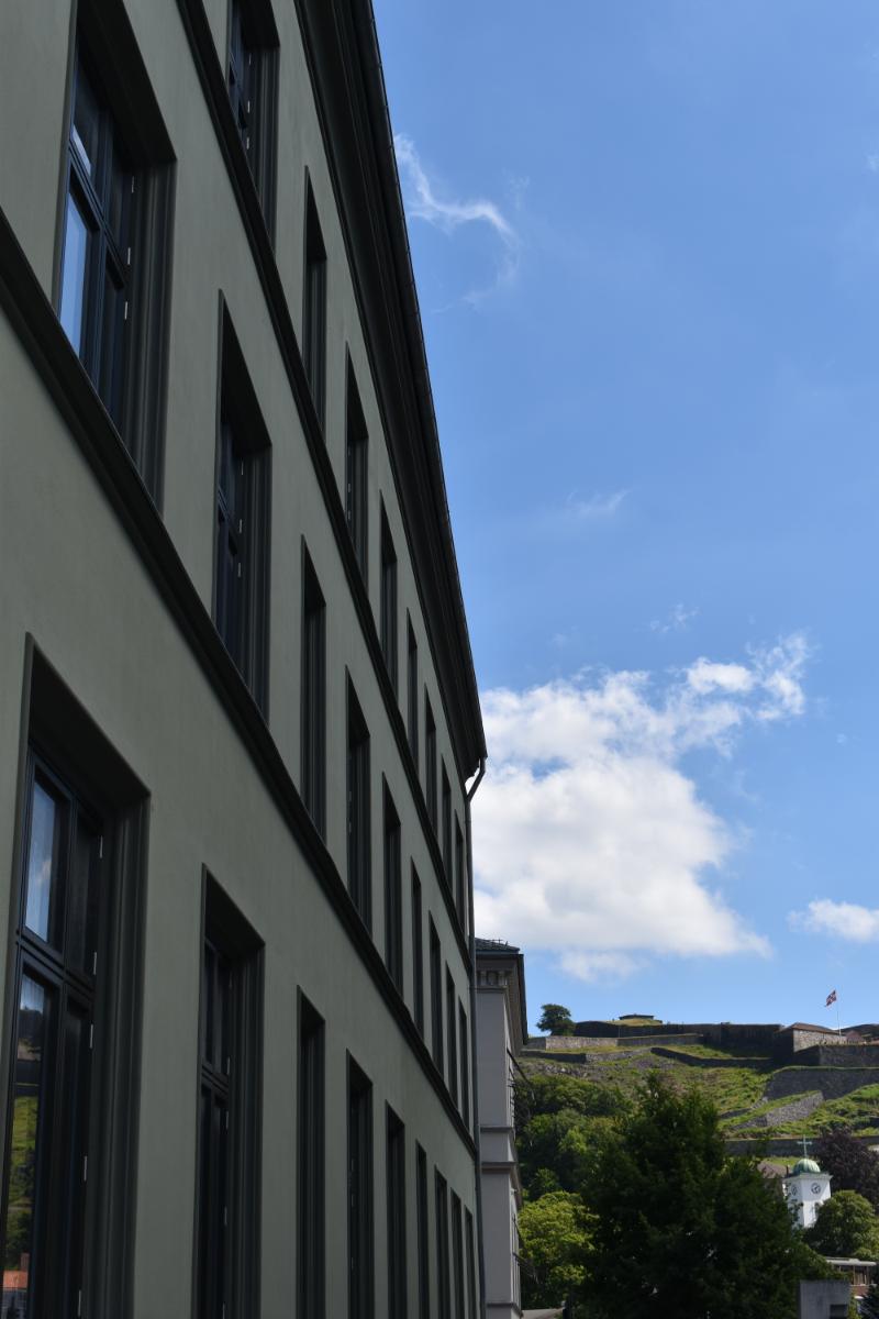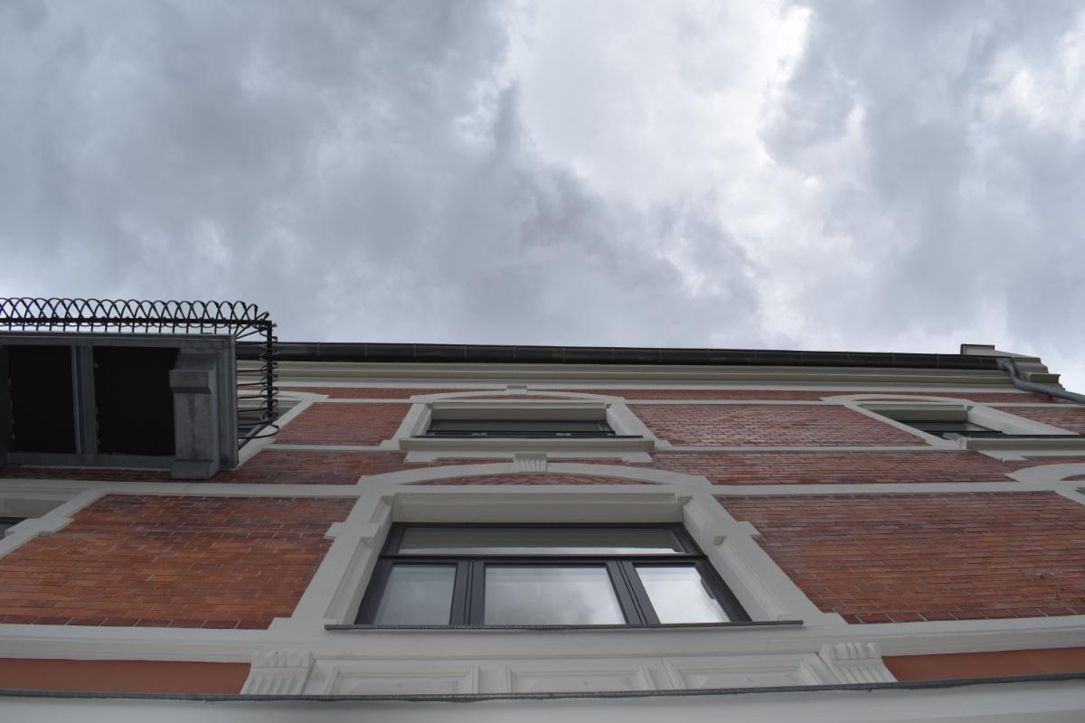 Beskrivelse: Full antikvarisk fasaderehabilitering. Malingsfjerning, utskifting av skadet tegl, ståldragere over vinduer og dører, kalkpuss, silikatmaling og gipsmakerarbeider.